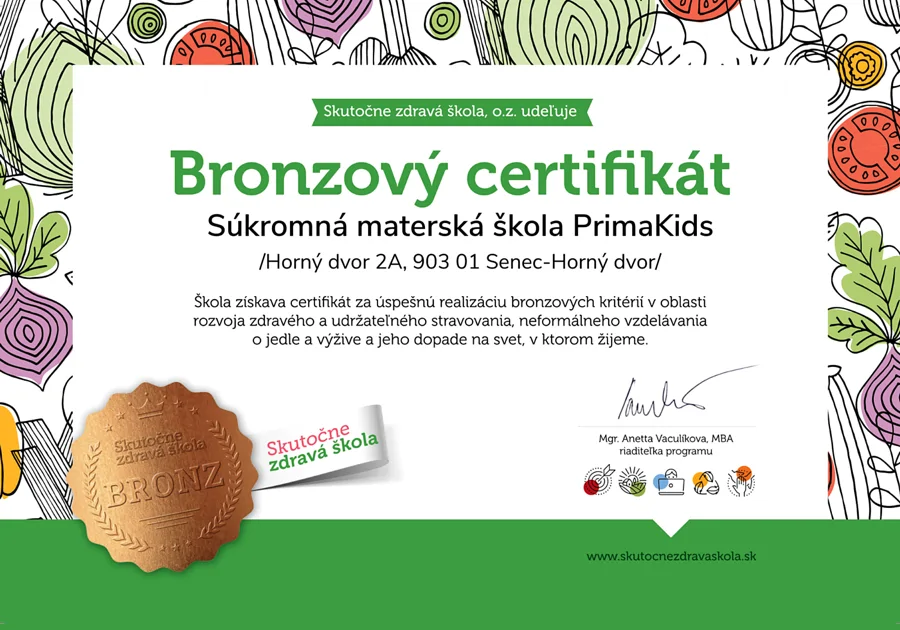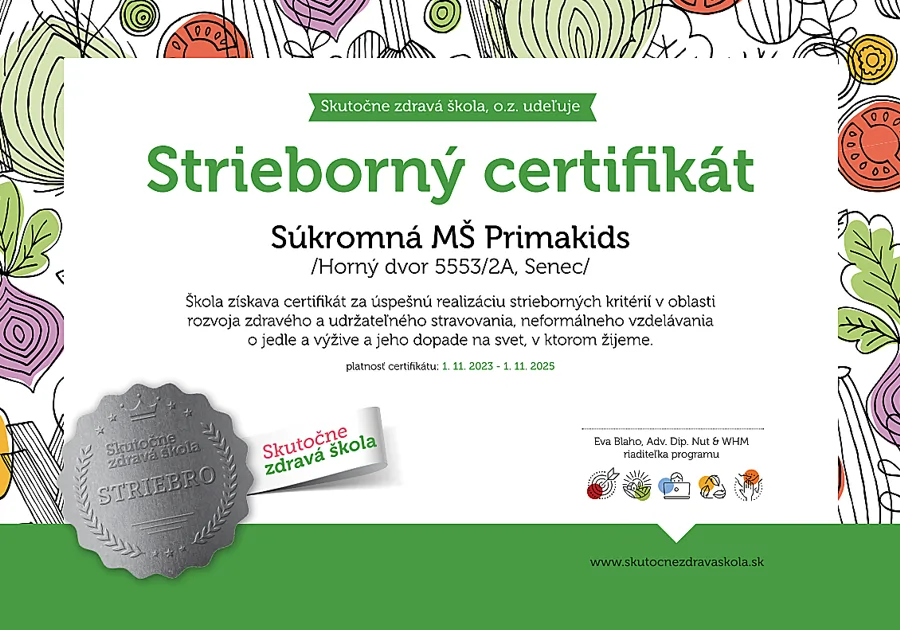 V roku 2025 sa stala PrimaKids historicky prvou materskou školou na území Slovenskej republiky ktorá získala v rámci programu Skutočne zdravá škola zlaté ocenenie.