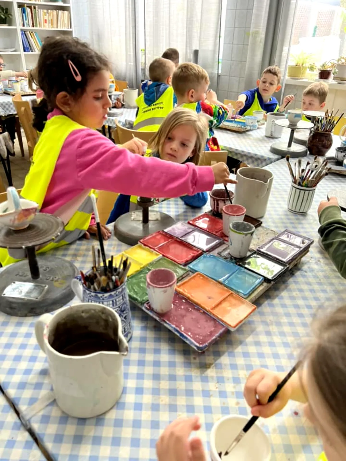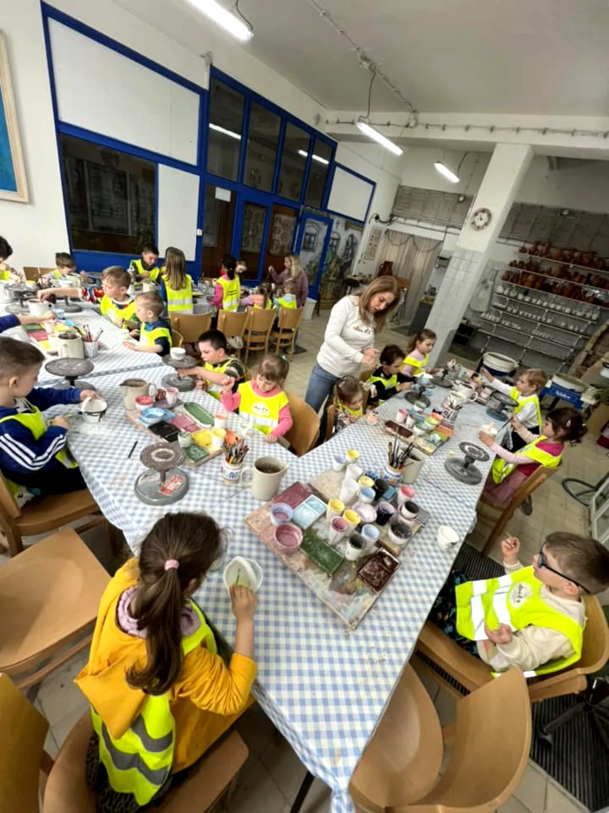A to nebolo všetko z tohto super výletu. Zrazu sme sa premenili na malých remeselníkov, posadali sme si za dlhokánske stoly kde nás už čakali krásne farby od výmyslu sveta a mohli sme si pomaľovať naše vlastné výrobky. Naša fantázia je obrovská a maľovanie so štetcami na vázičky sme si naozaj užili. Samozrejme že sme si naše hotové diela nemohli vziať domov, museli putovať najprv do pece a dostaneme ich až neskôr.